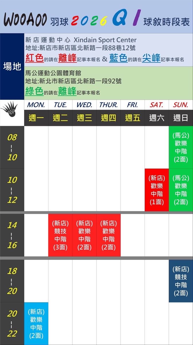 點選下方「確認報名」按鍵後,即代表您將前往:新店國民運動中心,2025-12-16 星期二 20:00 ~ 22:00的場地。