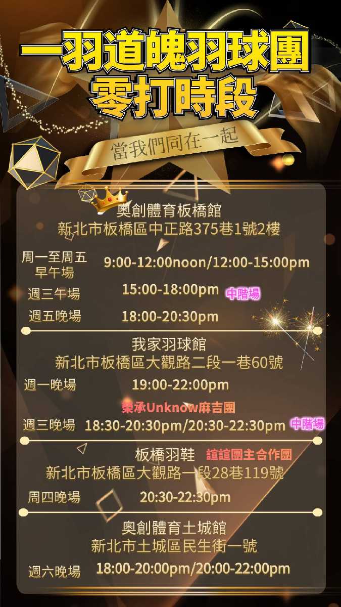 點選下方「確認報名」按鍵後,即代表您將前往:奧創體育板橋館,2025-12-08 星期一 09:00 ~ 12:00的場地。