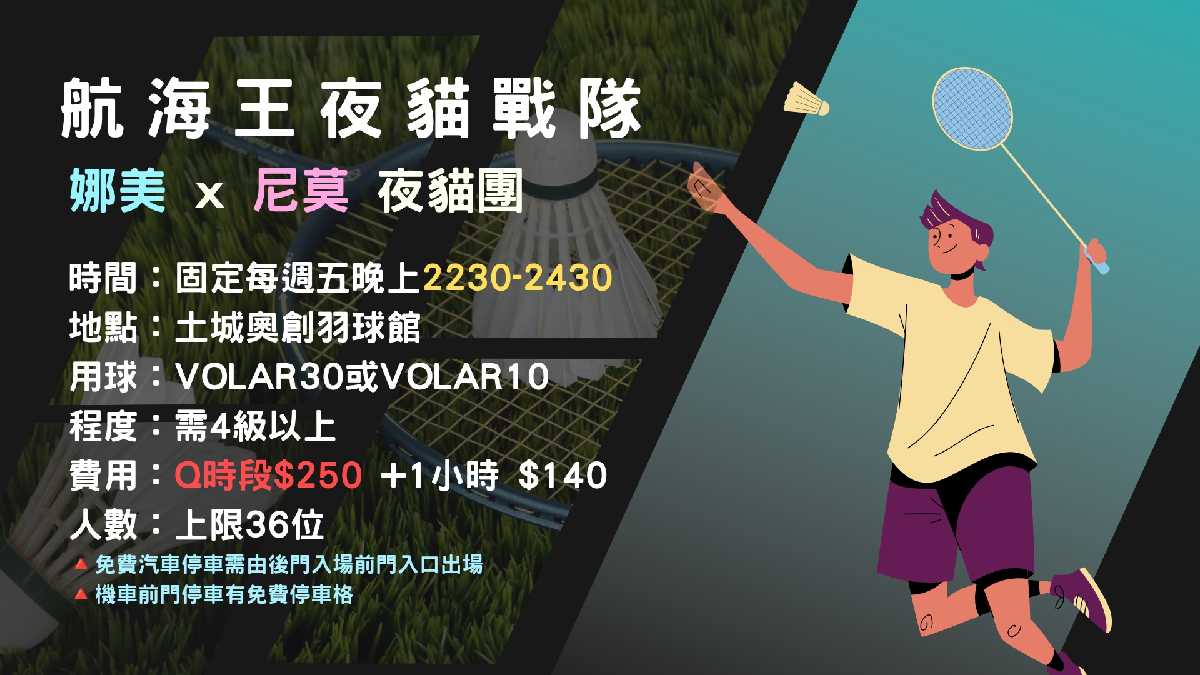 點選下方「確認報名」按鍵後,即代表您將前往:奧創羽球土城館,2025-12-05 星期五 22:30 ~ 24:30的場地。