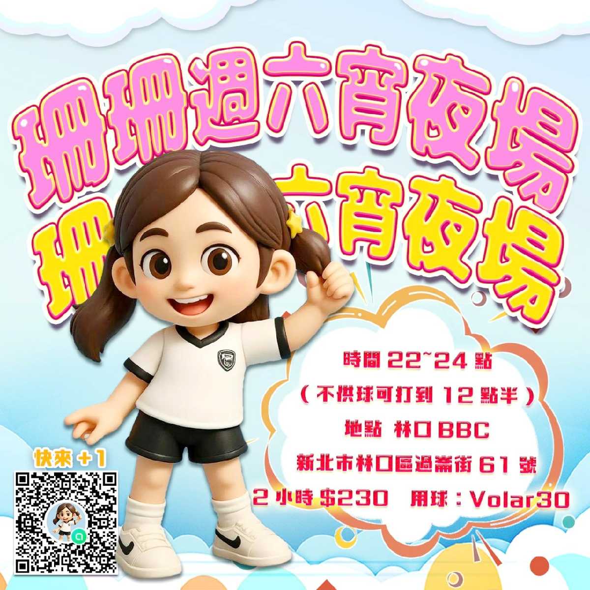 點選下方「確認報名」按鍵後,即代表您將前往:林口BBC羽球館,2025-12-06 星期六 22:00 ~ 00:30的場地。