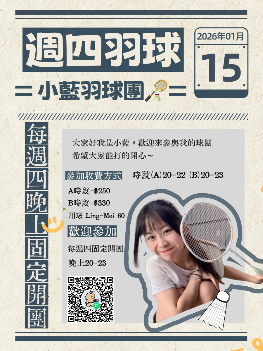 此球隊保證一定會接受透過羽球拼圖報名的零打球友!