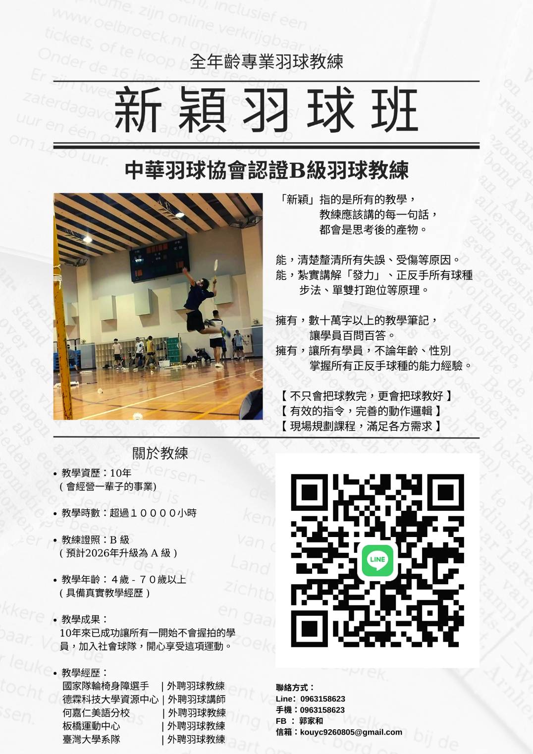 | B級羽球教練證、全年齡羽球教學 | |